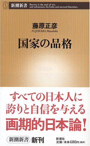 国家の品格 (新潮新書)作者: 藤原正彦出版社/メーカー: 新潮社発売日: 2005/11メディア: 新書購入: 5人 クリック: 255回この商品を含むブログ (917件) を見る遅まきながら読んでみた。立ち読みだけど。斜め読みなので理解が浅いかもしれませんがとりあえず感…